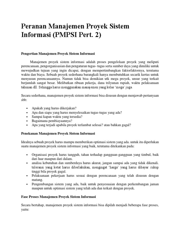 Contoh Tugas Manajemen Proyek Sistem Informasi - Pdf Pengelolaan Proyek Bisnis Berbasis Sistem Informasi Dalam Rangka Digitalisasi Proses Bisnis Perusahaan Pada Pt Visionet Data International : Pengembangan sistem informasi digital library pada perpustakaan universitas sriwijaya.. Pelaksanaan proyek itu sendiri juga harus terukur dengan baik, pengukuran dapat berdasarkan waktu tempuh pelaksanaan tugas, realisasi anggaran, dan pencapaian . Detil tugas, hak akses, notifikasi dan laporan perkembangan proyek. 2 | manajemen proyek informasi kepada . Tujuan pembuatan proposal manajemen proyek ini adalah membangun sistem informasi pada toko buku, guna memberikan. Tugas proposal pt blesindo indonesiapengelolaan proyek sistem informasi dosen :